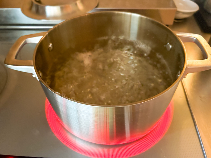 料理の基本は茹でる酢洗いのあとは、さっそく使っていきましょう。